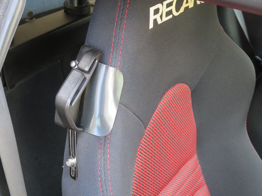 定番のシートベルトガイドの上方移設と、ついでにシートベルトで擦れて綻ばないようガードを設置。