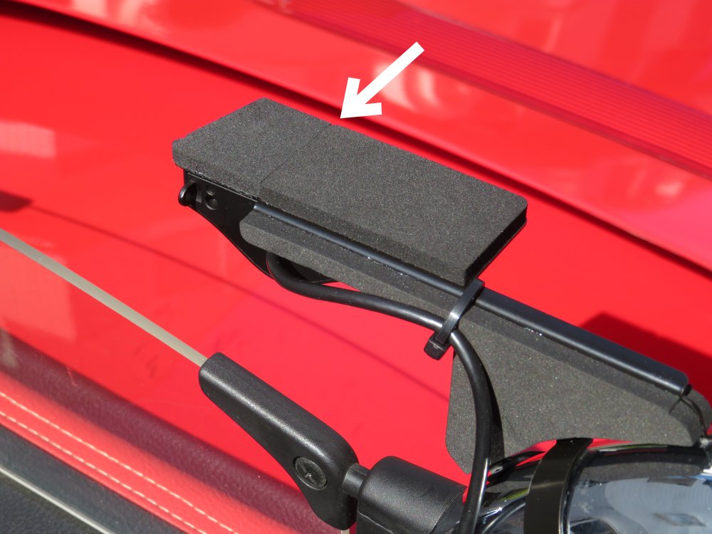 少しでも中央寄りに設置したかったので、カメラを運転席側へ少しずらして貼って、その上に似たスポンジを貼っています。