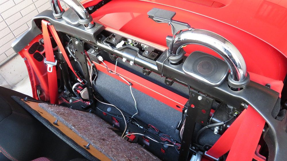 せめてクローズ時の音がもう少し改善してくれたらと思い、リアスピーカーを設置してみました。