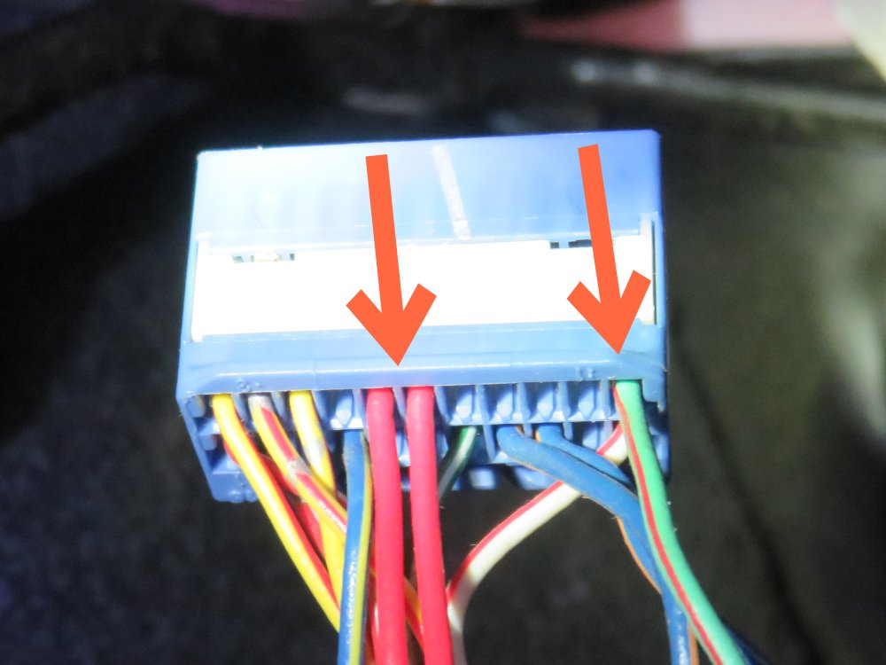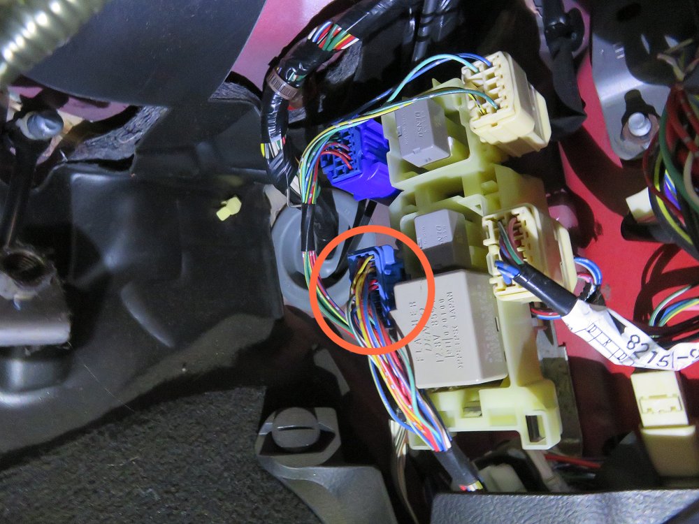 2本ある赤の右側のほうと車速の配線は、この先、アクティブトップ用 ECU に繋がっています