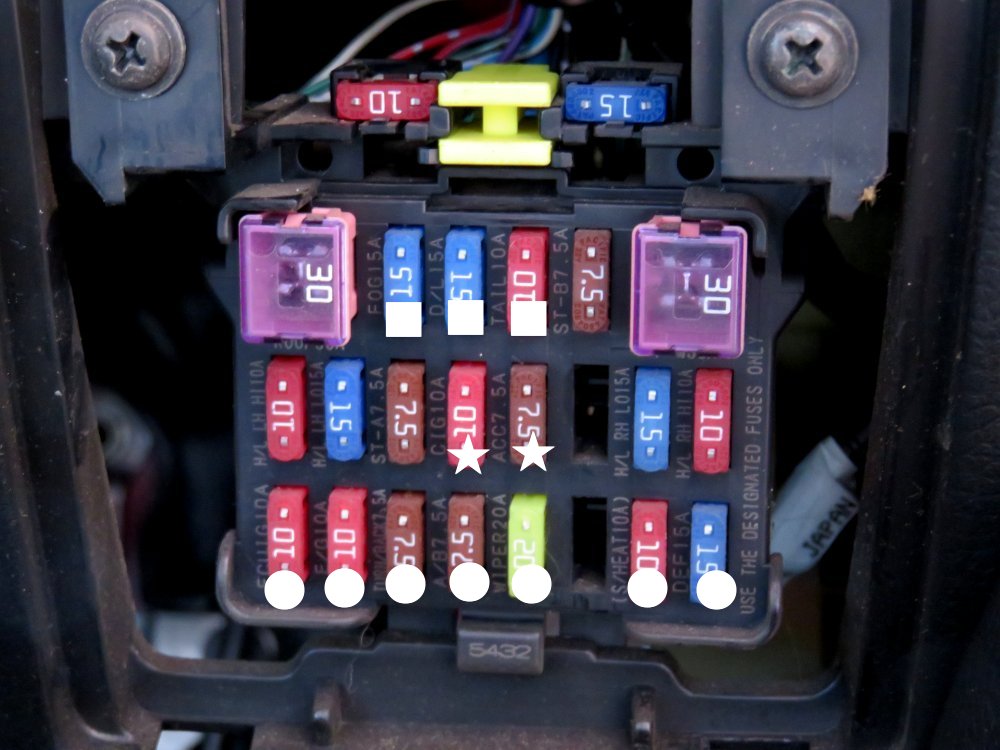 L880K コペンの場合、各ヒューズの下側からプラス電源が流れています